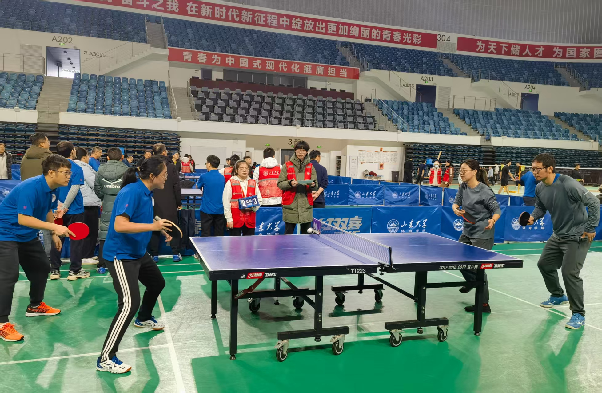 12月27日,山东大学(青岛)2025年教职医务员工乒乓球团体比赛顺利举办。数学交叉中心积极响应校区工会号召,由赵永新老师带队,组建了由李加宁、张钊、汪凌睿、齐楠、彭珍玲四位老师组成的青岛校区机关(数学交叉中心)队参赛。银球跃动聚合力,赛场竞技展风采,代表队在多轮激烈角逐中,凭借稳定发挥与默契配合斩获亚军。本次比赛不仅搭建了跨单位文体交流平台,更锤炼了教职医务员工的拼搏精神与协作素养,充分展现了中心教职工昂扬向上、奋勇争先的精神风貌。